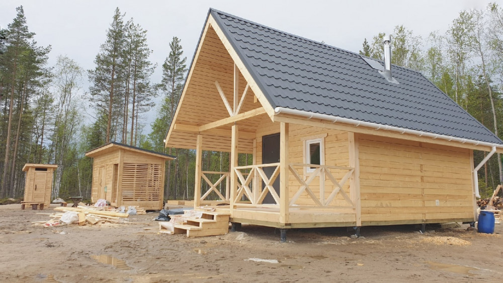 Баня 4*5 метров с террасой и комнатой под крышей