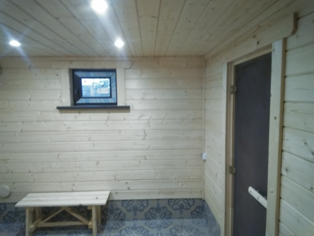 - Внутренняя отделка имитацией бруса с покраской Тиккурила для бань и саун, в парной осиновая вагонка кат. Экстра