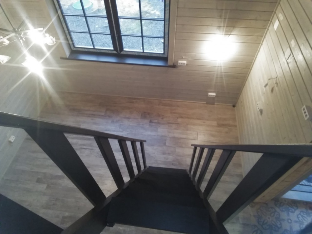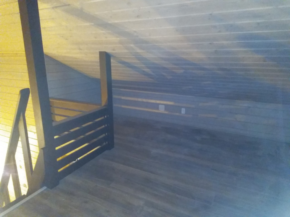 - На полу во всех помещениях кераммогранит, в комнате под крышей ламинат
