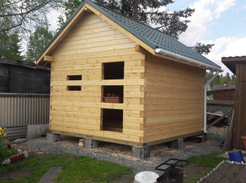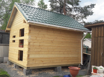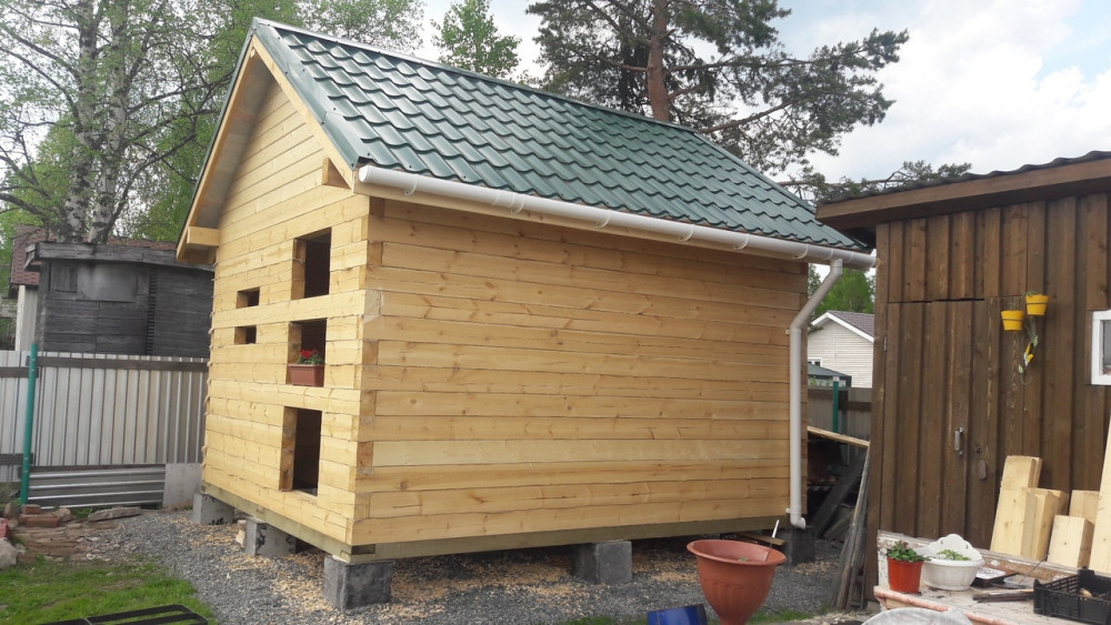 Сруб бани из бруса 4*4 метра в Лососсином кооп. Импульс Брус 100*150 мм Фундамент бетонные блоки На крыше металлочерепица