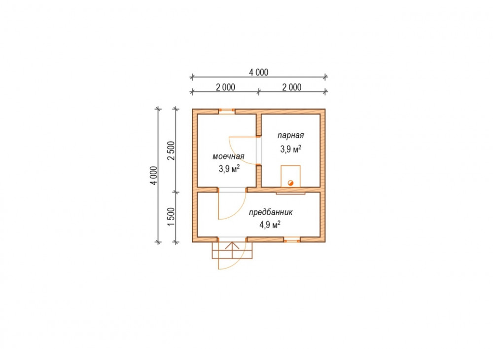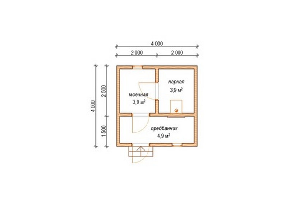 Компактная и лаконичная баня из бруса по проекту 4х4 изготавливается под ключ бригадой наших мастеров. Ее внутреннее пространство предусматривает моечную, парную и предбанник с выходом на участок.