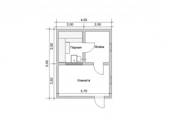 Если вы хотите заказать баню по выгодной цене, в таком случае вам подойдет данный проект в габаритах 4*5м. Он имеет продуманную планировку: на площади 20 м2 эргономично размещены три помещения для водных процедур и релакса: мойка, парная и комната отдыха.