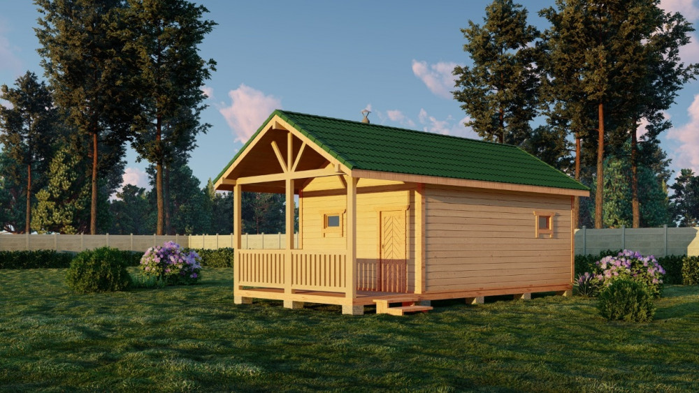 Баня каркасная 4*6м с террасой 4*2м "под ключ"