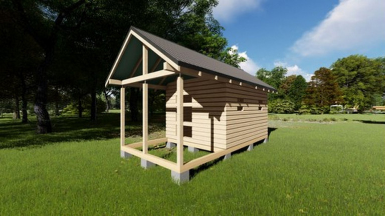 Сруб бани из бруса 3*4м с выносом 3*2м "под крышей"