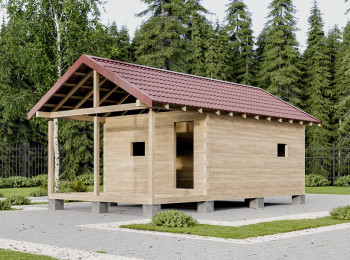 Сруб бани из бруса 4х6м с выносом 4*2м "под крышей"