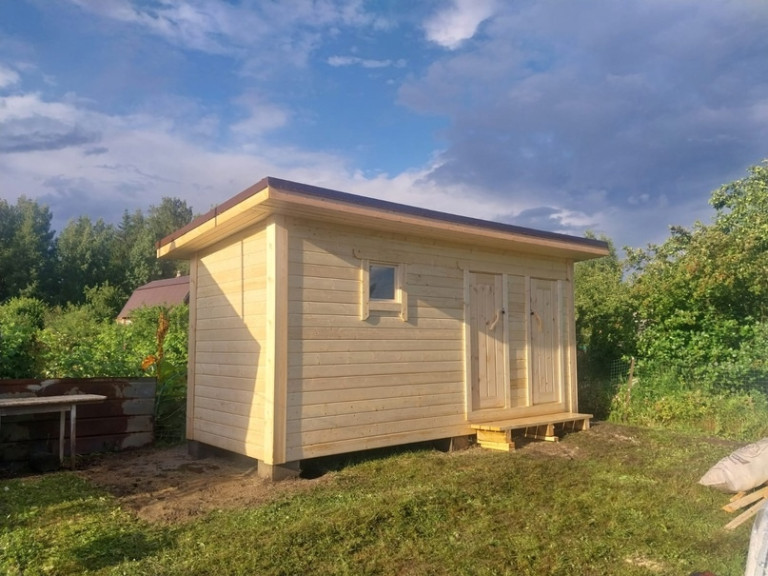 - Наружная отделка имитацией бруса 20*146 мм сорт АВ, в дровянике 1 стена строганная доска 20*90мм через щель